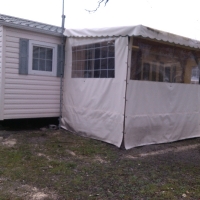 Couverte et équipé d’un barnum amovible - découvrable qui fait office de véranda de 8 m2.