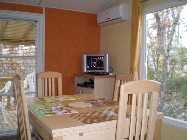Grande pièce de vie avec canapé convertible - cuisine équipée avec four - grand réfrigérateur/congélateur - four micro-ondes,climatisation réversible,convecteurs toutes pièces - wc séparé - salle de bain , 2 chambres ,le mobilhome peut loger 7 personnes,vaisselle comprise et tout le nécessaire pour passer un séjour dans le mobilhome (dessus de lits couettes)