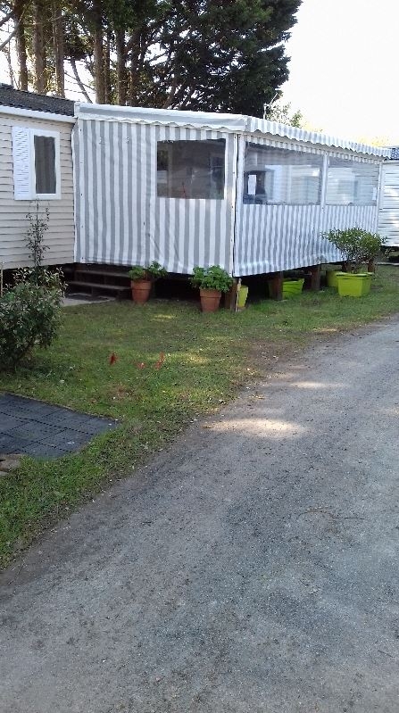 Rapidhome excellent état sur camping manoir de Ker An Poul 4 étoiles à Penvins (56) comprend 3 chambres dont une suite parentale, 2 chambres dont une avec lits doubles et l'autre avec lit gigogne, 2 salles de bain, 2 WC, canapé convertible dans pièce principale.