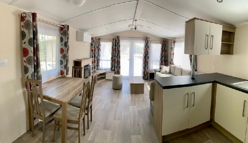 Mobil home neuf, utilisé 8 mois, haut de gamme ; 1 chambre parentale avec placard et salle d'eau privative, 1 chambre 2 lits, 1 salle d'eau avec WC, cuisine en U avec salon / salle à manger panoramique.