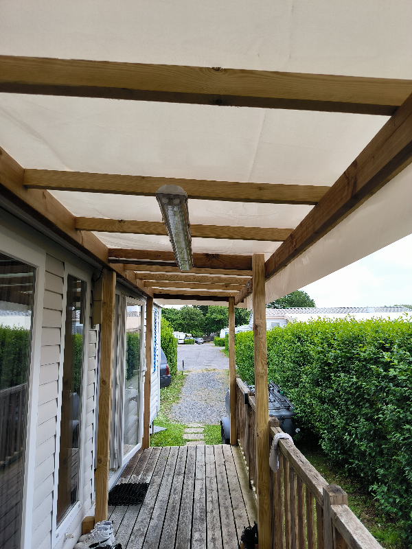 Mobil-home très bon état tout équipé avec grande terrasse couverte et cabanon sur parcelle camping le domaine de kernodet a st molf