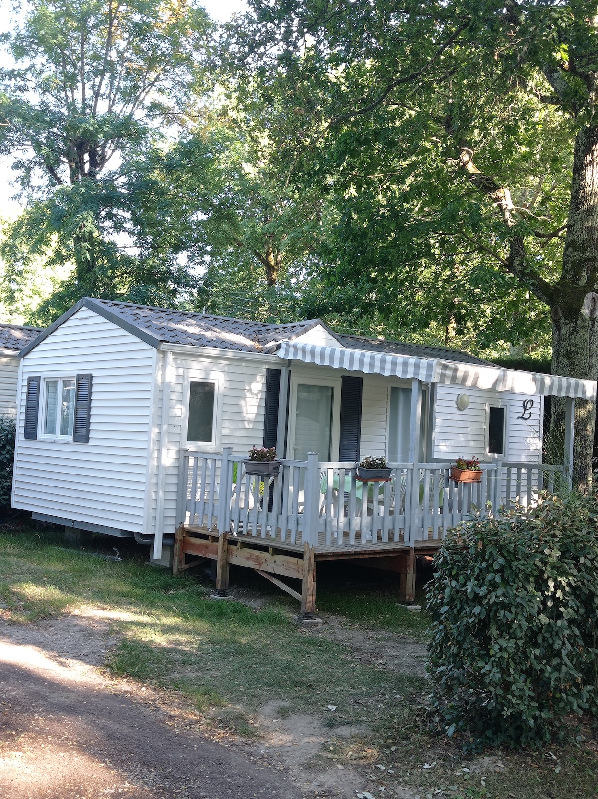 La résidence mobile de loisir qui vous est proposée est déjà installée, calée et raccordée sur une parcelle locative très ombragée située dans un camping 4**** très bien équipé et joliment paysagé :