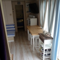 Mobil home en très bon état 2 chambres dont 1 avec un lit deux places (matelas neuf) une chambre avec 4 couchages deux lits superposés et possibilité d utiliser la banquette du salon.