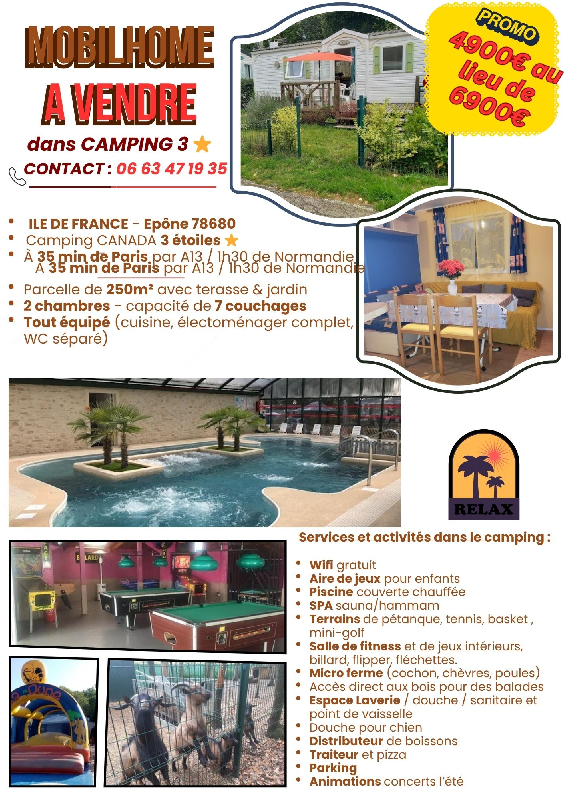 Camping 3 étoiles ouvert toute l'année : piscine couverte chauffée, sauna hammam, terrain de pétanque, mini golf, aire jeux enfants, mini ferme, tennis, animations bar adultes/enfants juillet et aout, etc...