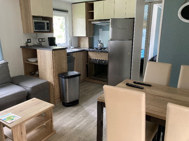 Vend pour cause déménagement Mobil home Rapidhome Bora-Bora comprenant 3 chambres pouvant coucher 7/8 pers, 1 douche avec rangement, WC séparé, salle à manger /salon, cuisine tout équipée, avec grand placard et nombreux rangements , clim inversée.