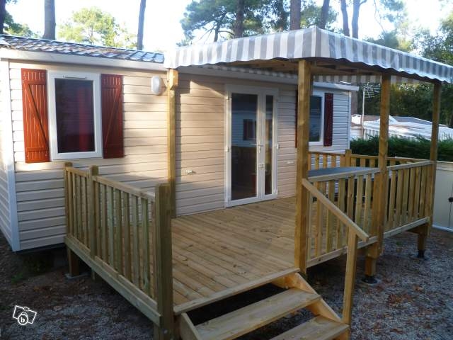 Vends mobil home 2 chambres, année 2011, marque IRM OPTIMA, tout équipé ( vaisselle, couchage, salon de jardin, transats, tv, dvd...). Il est équipé d'une terrasse en bois de 2.5 m x 4.5 m semi-couverte. Il est situé sur une belle parcelle au calme dans un camping 4****étoiles 'Les Pierres Couchées" à Saint-Brévin-les-Pins, à proximité de la mer. A enlever ou à laisser sur place sachant que les frais au droit de propriétaire au renouvellement sont de 6997€. |