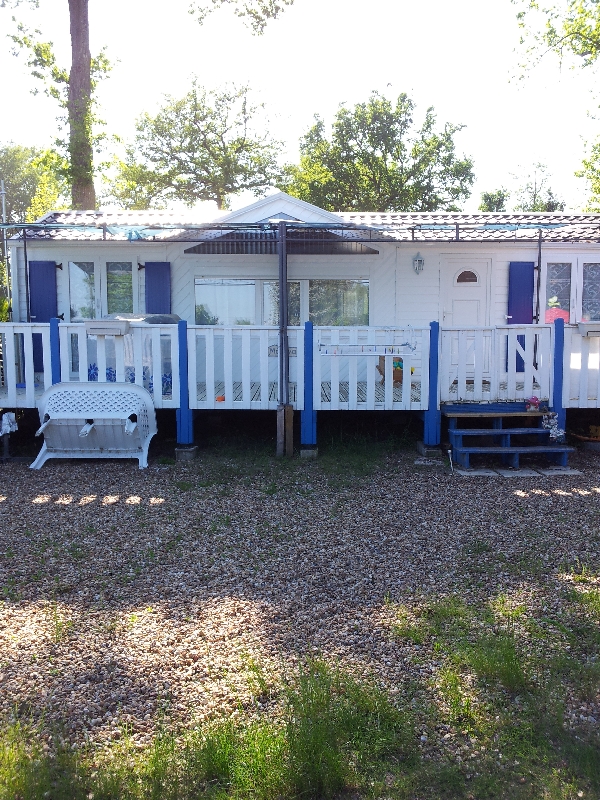 le mobil home est actuellement sur un terrain de camping les Bois-du-Bardelet à Gien. |