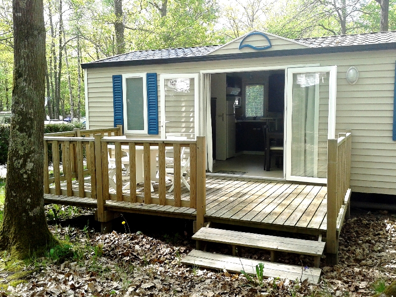 Mobilhome orienté sud sur parcelle semi-ombragée.