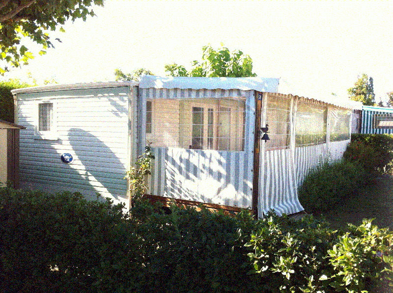VEND MOBIL-HOME SUPER TITANIA, ANNEE 2000 EN EXCELLENT ETAT AVEC TERRASSE ENTIEREMENT COUVERTE DE 7 m x 2.70 m, RADIATEURS ELECTRIQUE S A MANGER ET SALLE DE BAIN, CLIC CLAC DANS LE SALON, CUISINNE EQUIPEE, DOUBLE VITRAGE, CHAUFFE EAU GAZ, 2 CHAMBRES.